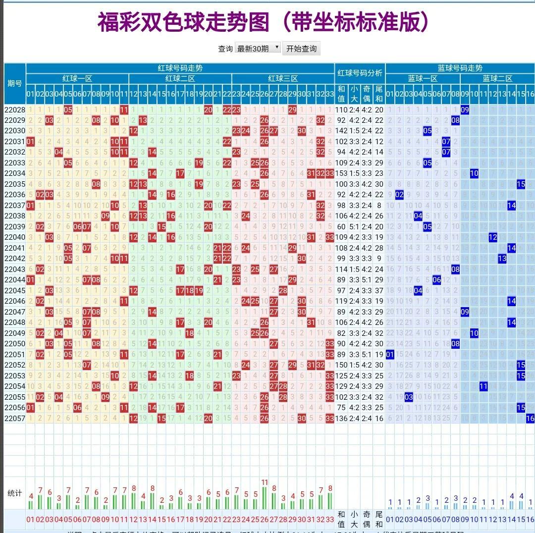 6、如上图,双色球22058期历史同期开奖信息及数据分析,查看历史同期各期开奖号码。