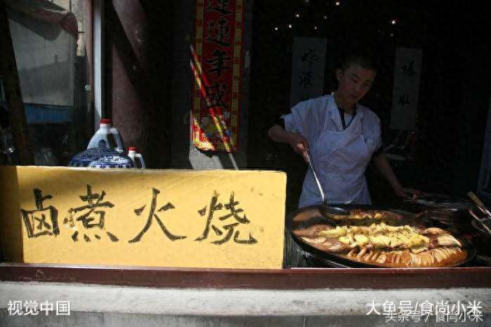 卤煮在北京是一道著名的的地方传统小吃,它是将火烧、炖好的猪肠和猪肺放在一起煮,买一碗主食副食和热汤都有了。卤煮起源于北京城南的南横街。据说光绪年间因为用五花肉煮制的苏造肉价格昂贵,所以人们就用猪头肉和猪下水代替。经过民间烹饪高手的传播,久而久之,造就了卤煮火烧。地道的北京人估计没几个不知道卤煮火烧的。