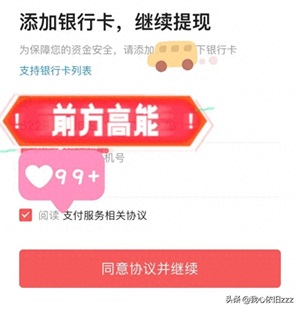 接下来,就好办了。继续开始从头操作,我点击添加银行卡,添加了我一张银行卡,继续提现,点击“同意协议并继续”,我的收益很快就提到我的银行卡里了。忘说了,操作时,不要忘了在“阅读支付相关协议”前打对勾,否则,进行不了下一步。