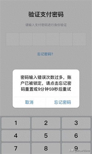 当我点击“去钱包注销”几个字后,出现了“验证支付密码”几个字。这个好办,我心里一边想着这么简单的事,一边输入密码。没想到出现了“密码输入不正确,还可以输入x次”,输一次不行,再输一次还是不行,一次一次又一次,终于桌面上出现“”密码输入错误次数过多,账户已被锁定,请击忘记密码重置或9分钟59秒后重试。”这些字。