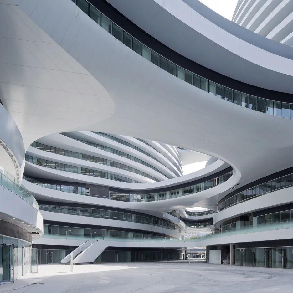 这个综合体占地 33 万平方米,集零售、办公和娱乐空间于一身,由总部设在伦敦的 Zaha Hadid 建筑事务所为大型房地产开发商 Soho 中国设计。