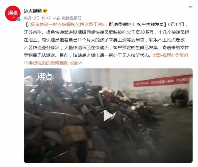 在扩张前期,极兔在10个月时间里就烧掉了200亿元,去年6月,极兔速递江苏某网点还被曝拖欠快递员工资30余万。