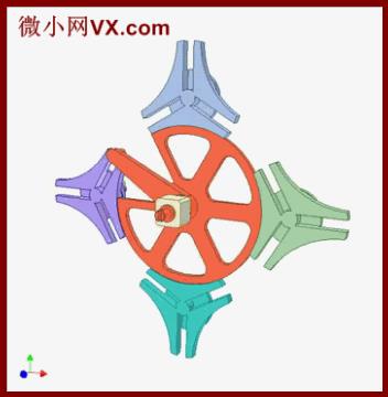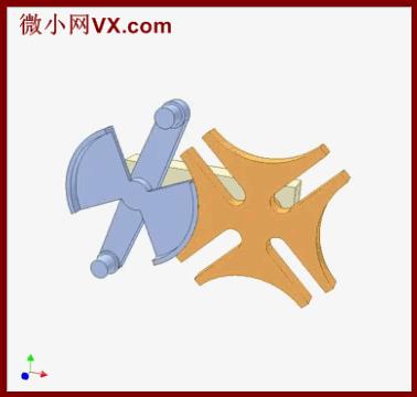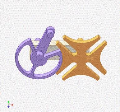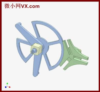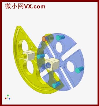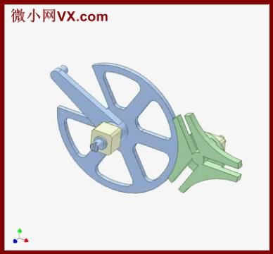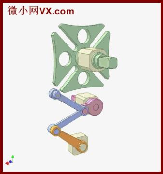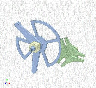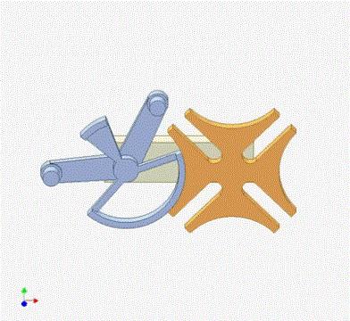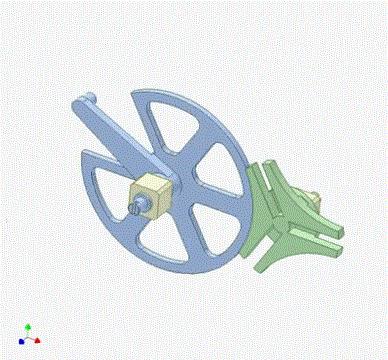 蓝色曲柄旋转一周,绿色盘旋转1/4轴。