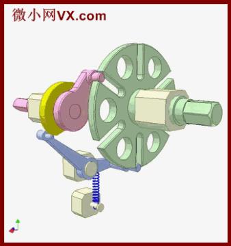 黄色凸轮(固定在曲柄上)和带有销的黄色杆在绿色盘驻留期间维持其静止。