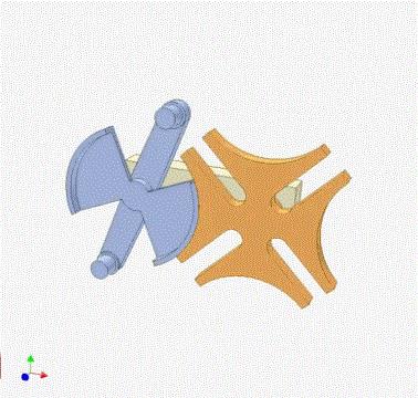 固定的米黄色圆凸轮和粉色滑块有助于减小橙色盘的加速度。