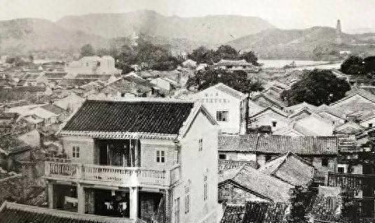 (从梌山今中山公园,高处瞭望到的府城西南街区。远处的平湖门城楼,城外西湖、苏堤、泗州塔、挂榜山等风景名胜都能看到。网图)