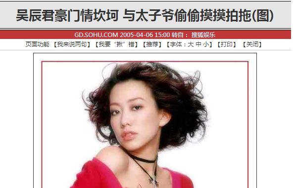 当然吴辰君在荧幕上“不受欢迎”,这并不代表私下里她不缺追求者。她颇具欧美版的面孔和曼妙的身材吸引了不少公子哥的喜爱。在还未结婚之前,她虽然甚少绯闻,但交往的却都是“大款”,被媒体称为“小开杀手”。