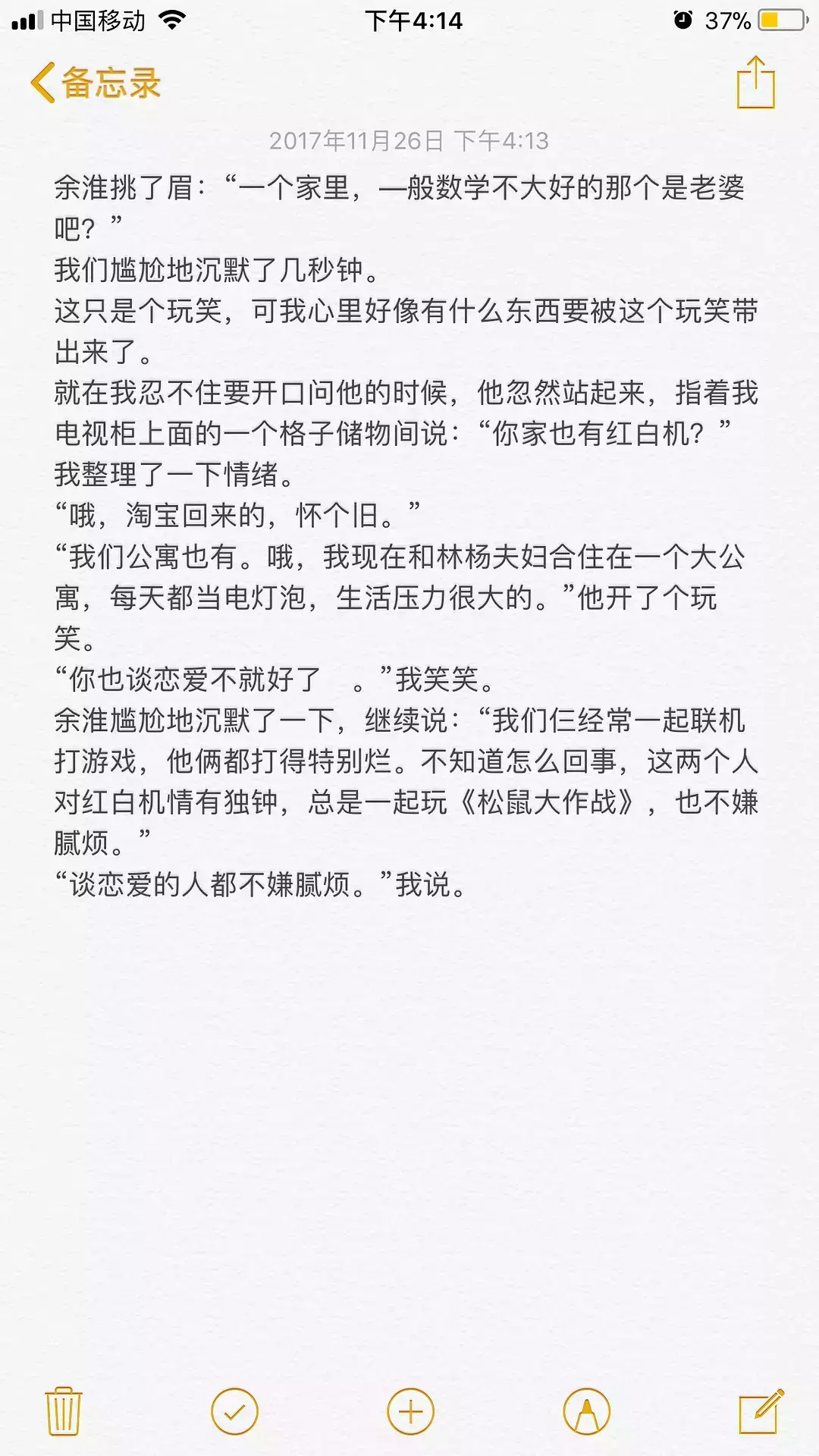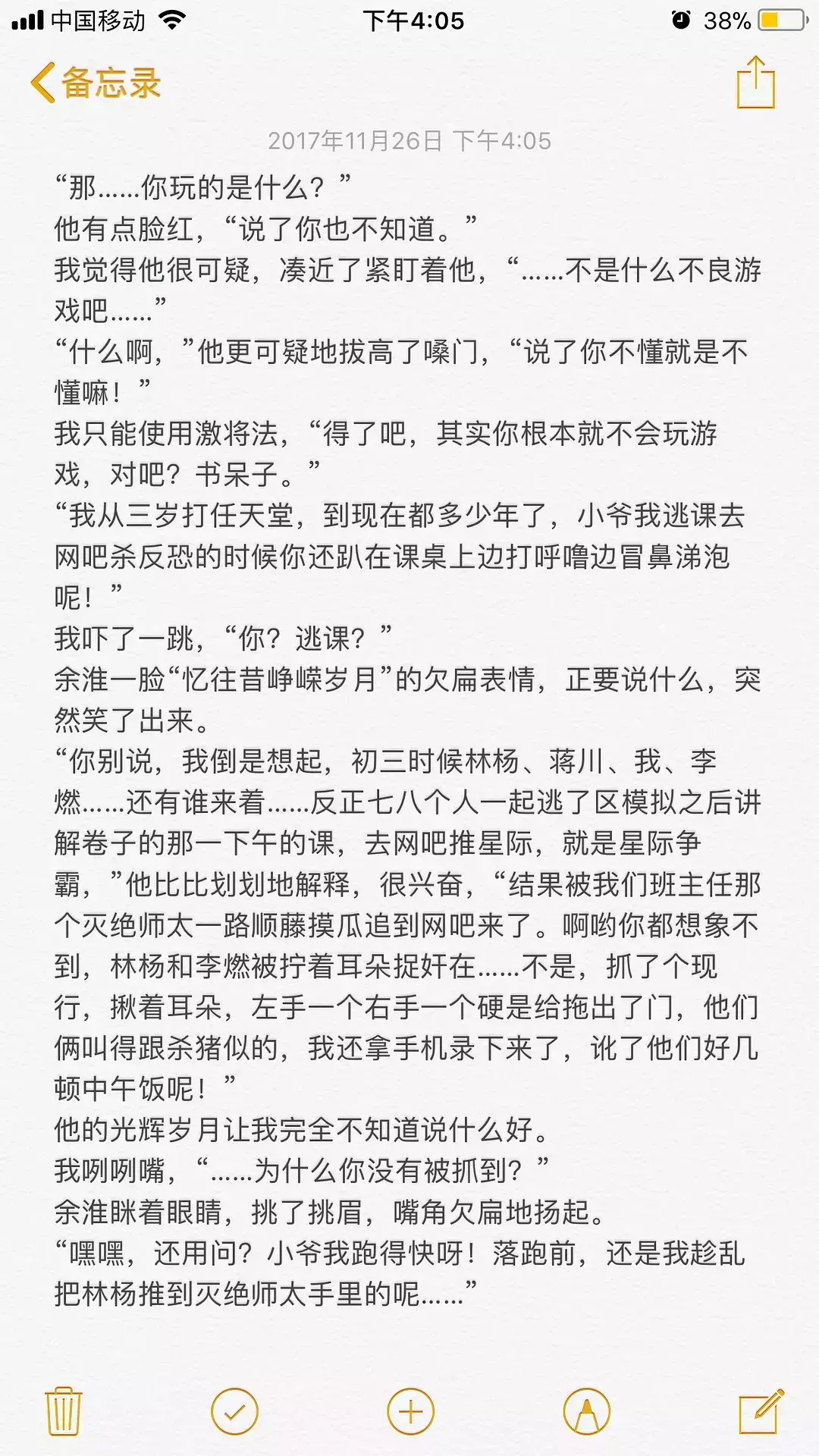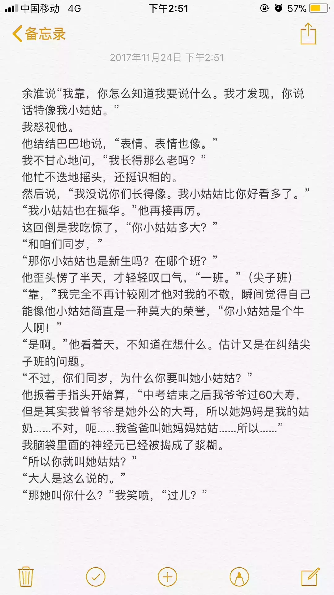 这一段有点长,而且没有周周,本来不想贴的,但是我挺喜欢这段的,调皮的,带点蔫坏的,又有点得瑟的林杨,还有彼此喜欢着的耿耿和余淮,让这段情节十分出彩,所以,还是贴出来了。希望你们看的开心