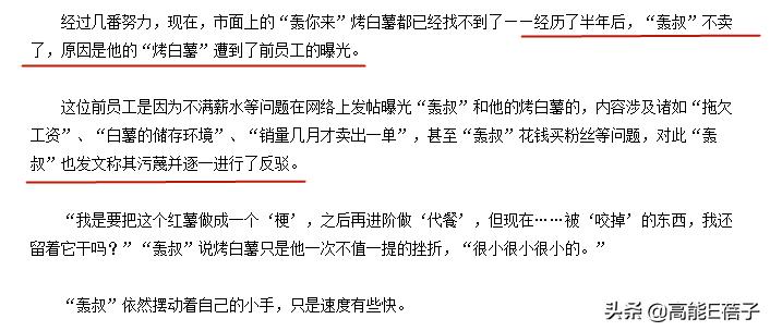 他也像其他网红一样转向卖货,不过他卖的不是化妆品或者衣服,而是另辟蹊径,卖烤红薯。