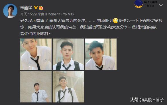 得知上热搜后,林皓洋感到受宠若惊,还晒出新照感谢大家认可他的审美。
