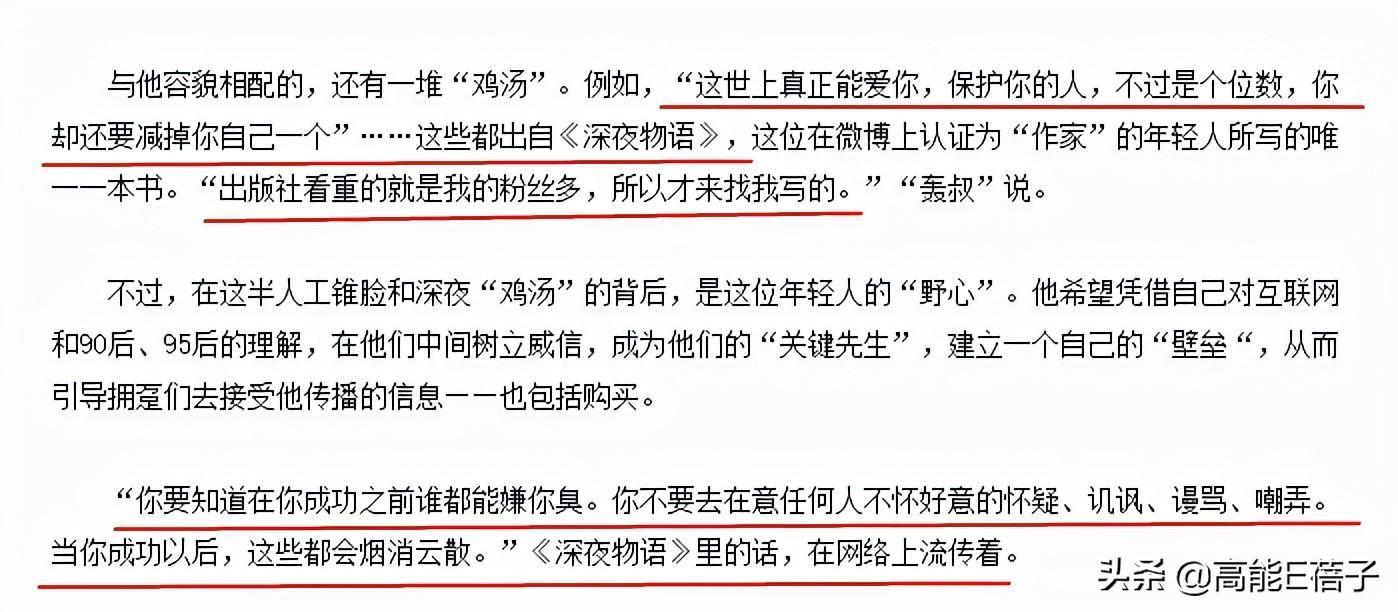 里面的一些话也曾受到一些网友的追捧。他后来接受采访时,从不避讳地说出出版社是看中他粉丝多才找他写书的这个事实。
