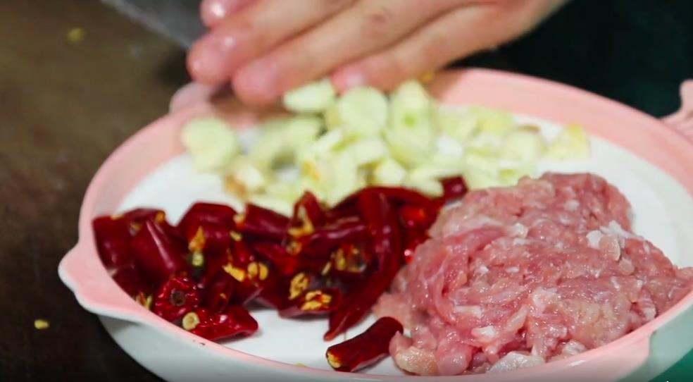 这道菜的食材特别简单:四季豆、食用油、食盐、干辣椒、大蒜、花椒籽、猪肉、生抽。