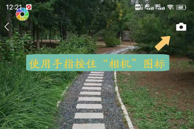 如上图所示,这是正常发送朋友圈的入口,如果想要发送纯文字的朋友圈,步骤是相同的,但唯独不同的地方是,用户不能直接单击“相机”图标,而是使用手指按住“相机”图标。如下图: