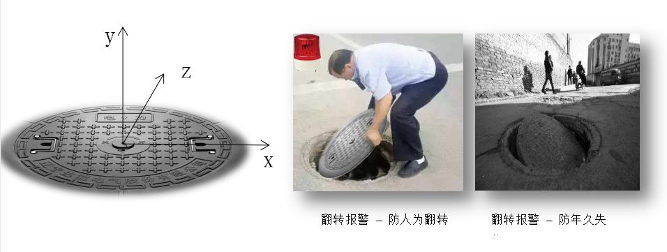 b.对井盖的x,y,z三维坐标数据进行实时监控上传,有效发现井盖被翻转的情况,高效的发现异常情况。