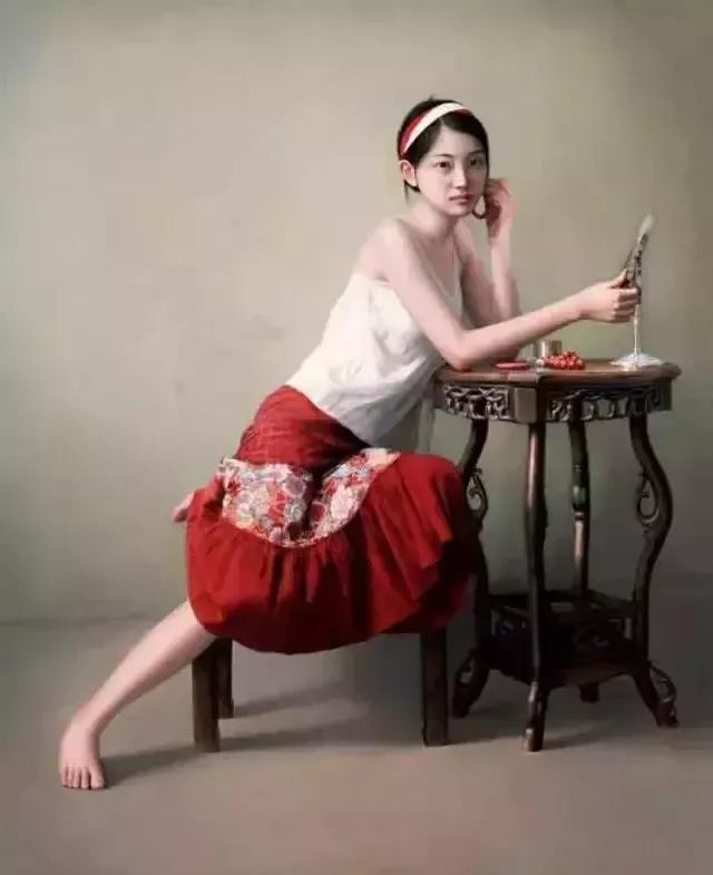 军在20世纪90年代末创作的作品,也是他的代表作之一。画中的少女形象被描绘得十分逼真,每一个细节都栩栩如生。画面的色彩也非常柔和,给人一种温暖而亲切的感觉。