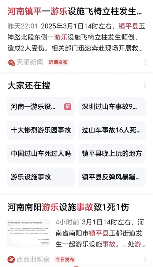 镇平县发生了一起令人痛心的游乐设施事故。在一个本应充满欢声笑语的游乐场所,一场意外却让欢乐瞬间变成了悲剧。这起事故再次敲响了游乐设施安全的警钟,也让我们深刻意识到安全检查的重要性。