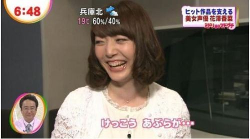 关于花泽香菜的笑,一段时间被日本的网友们做成表情包和调侃的话题,使她的人气大涨。就是这张笑得肆无忌惮的照片,很多人对此笑容的评价是也醉了。