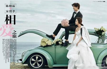 最近,橙汁CP人气持续走高,两人不仅在节目中秀尽恩爱,甚至还在私下做起了准新人该做的事情——拍婚纱照。陈柏霖宋智孝二人拍摄了一套甜蜜到爆的婚纱照,顺便登上了某时尚杂志的春季刊封面。