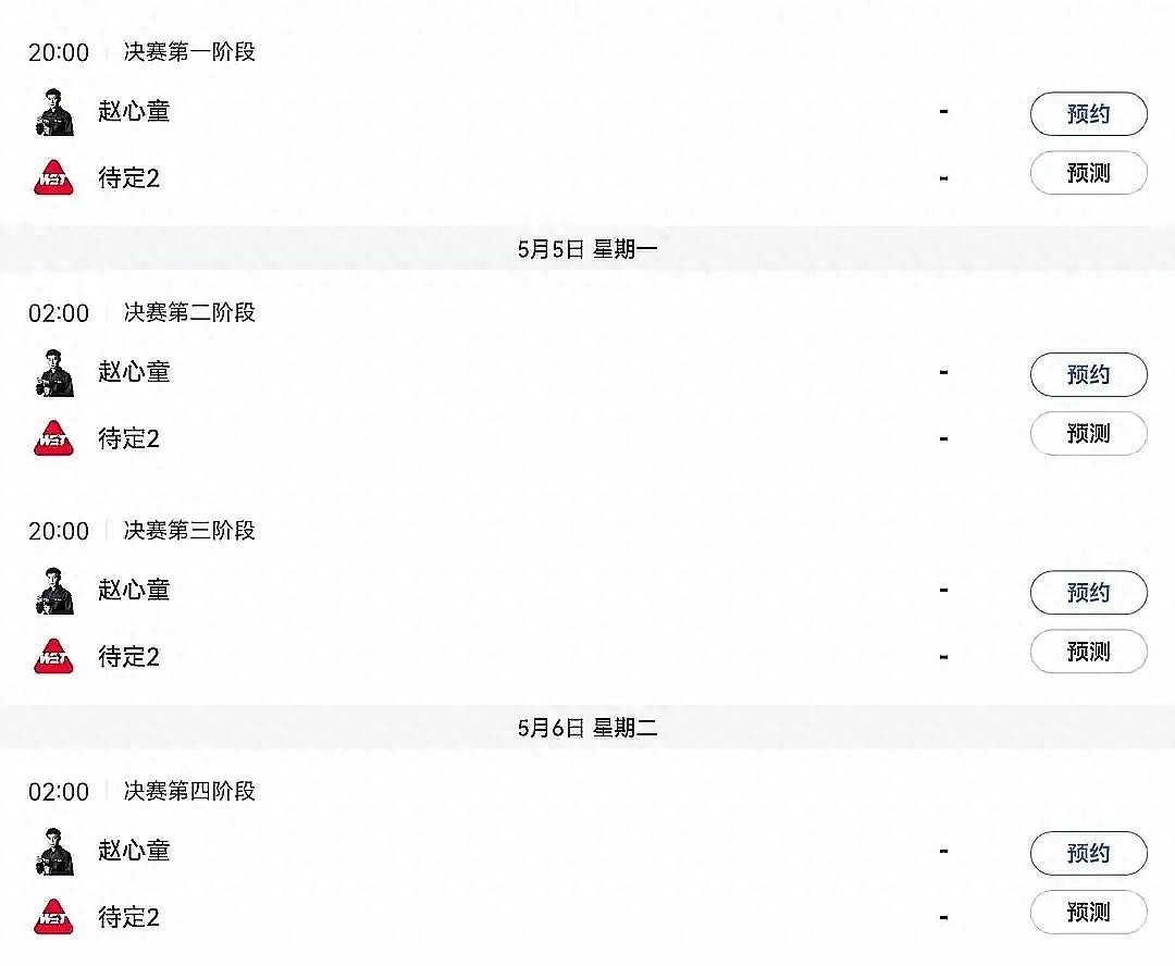 央视五套、央视频及虎牙三大平台会全程见证赵心童的高光时刻。