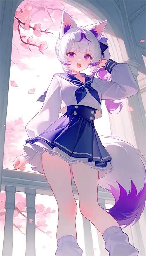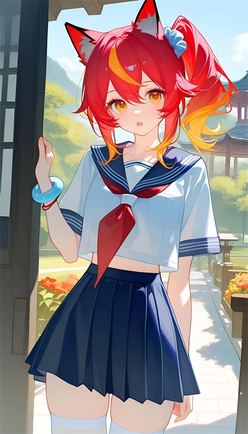 少女的水手服宛如一道亮丽的风景线,每个动作都散发着优雅的气息。