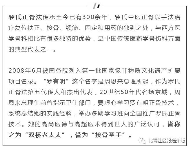 “双桥老太太”正骨技术落户北京城市副中心啦!
