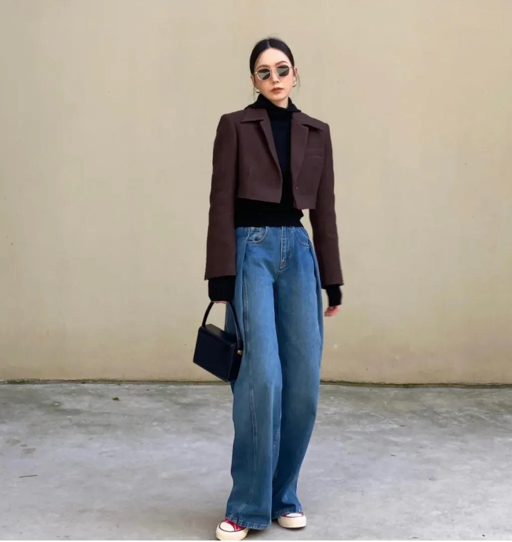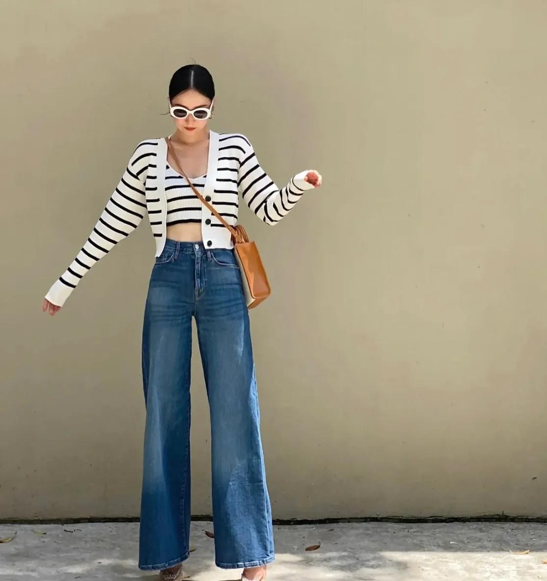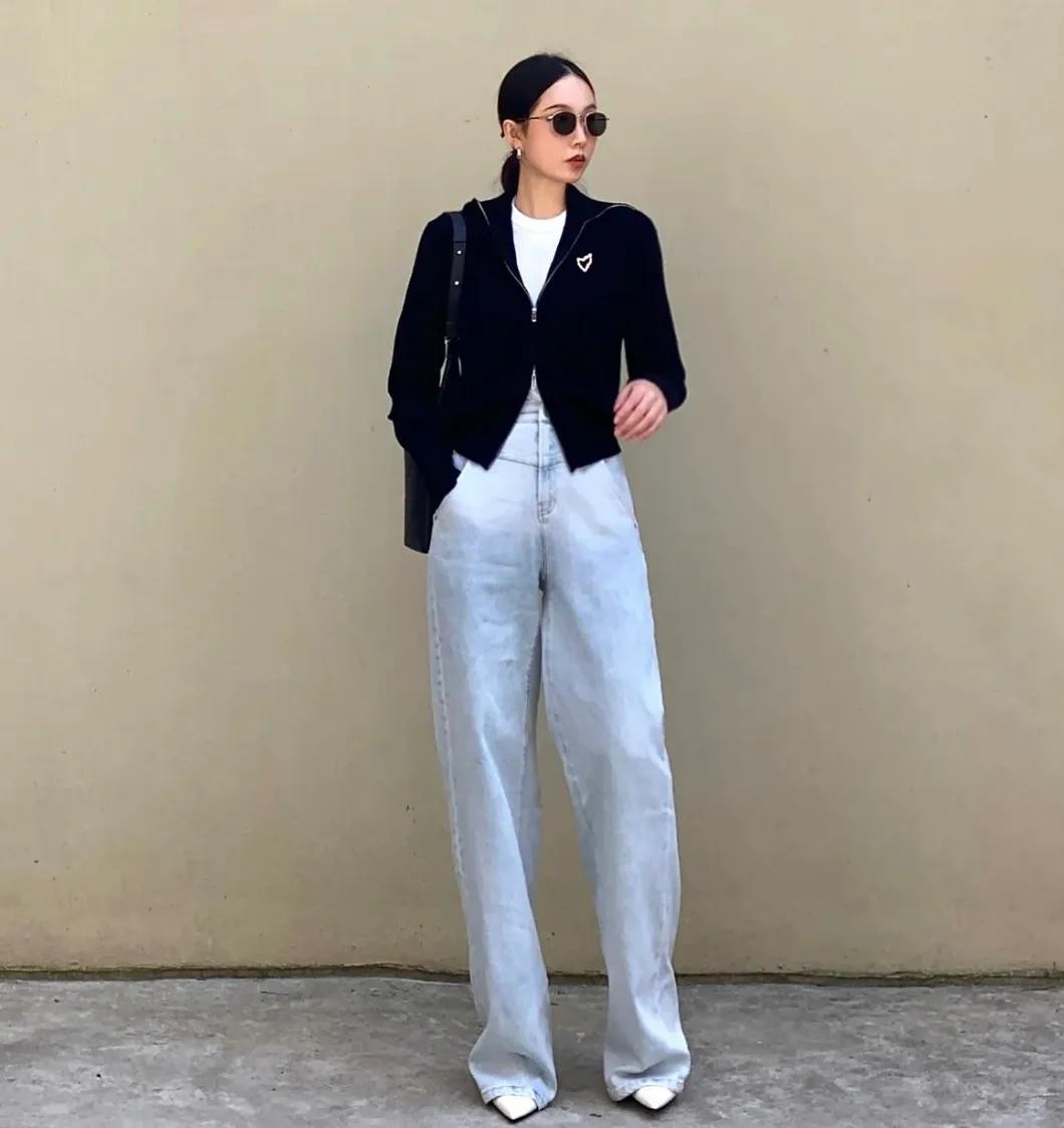 18组阔腿牛仔裤日常穿搭示范:显高显瘦还高级
