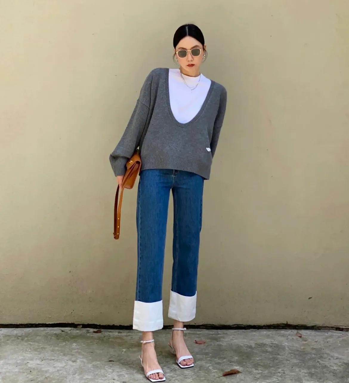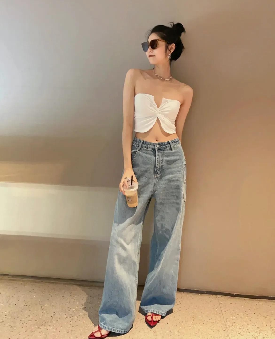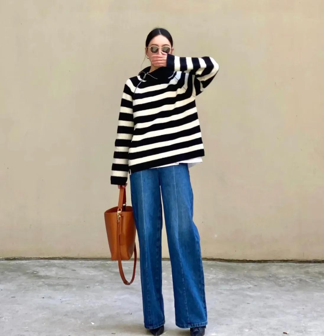 18组阔腿牛仔裤日常穿搭示范:显高显瘦还高级