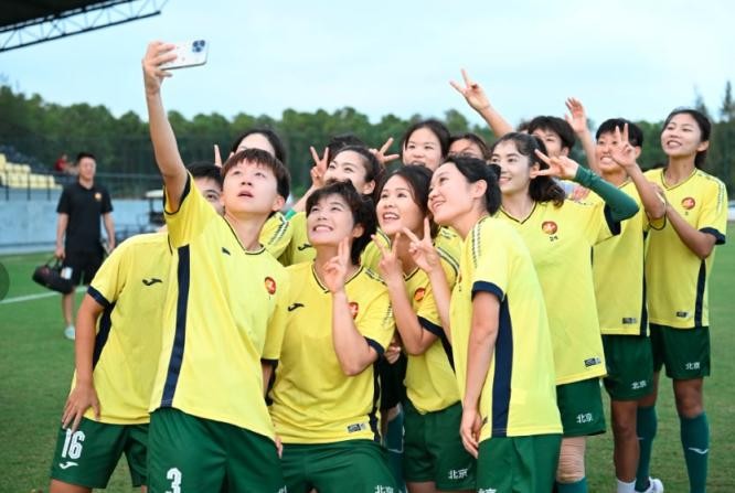 北京女足足协杯夺冠后自拍留念。图片来源:@中国女足