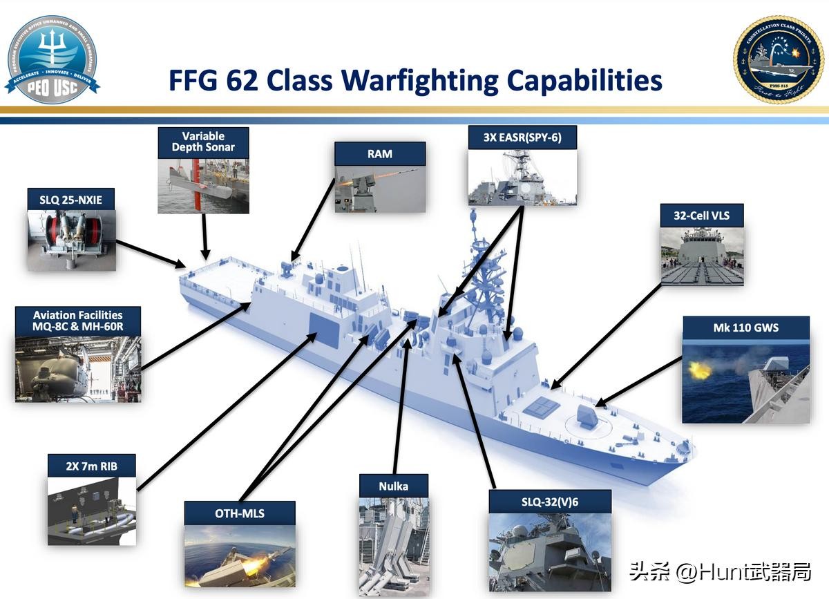 此外,该护卫舰还配备有“宙斯盾”作战系统、AN/SQQ-89(F)反潜作战系统、AN/SPY-6有源电子扫描阵列3D雷达等多款先进设备。