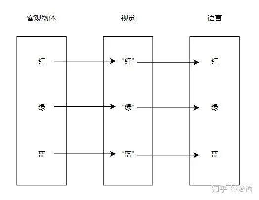 但是他自己并不知道他跟别人不一样,别人看到的天空是蓝色的,他看到的是绿色的,但是他和别人的叫法都一样,都是“蓝色”;小草是绿色的,他看到的却是蓝色的,但是他把蓝色叫做“绿色”。所以,他自己和别人都不知道他和别人的不同。