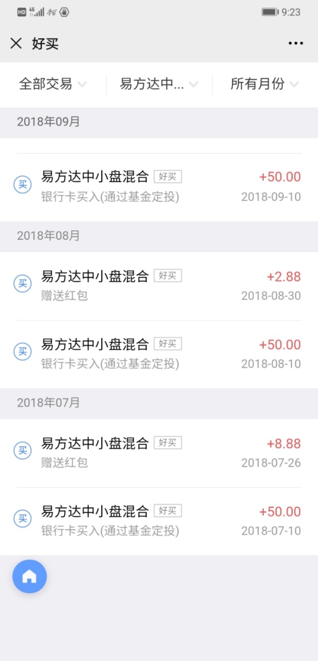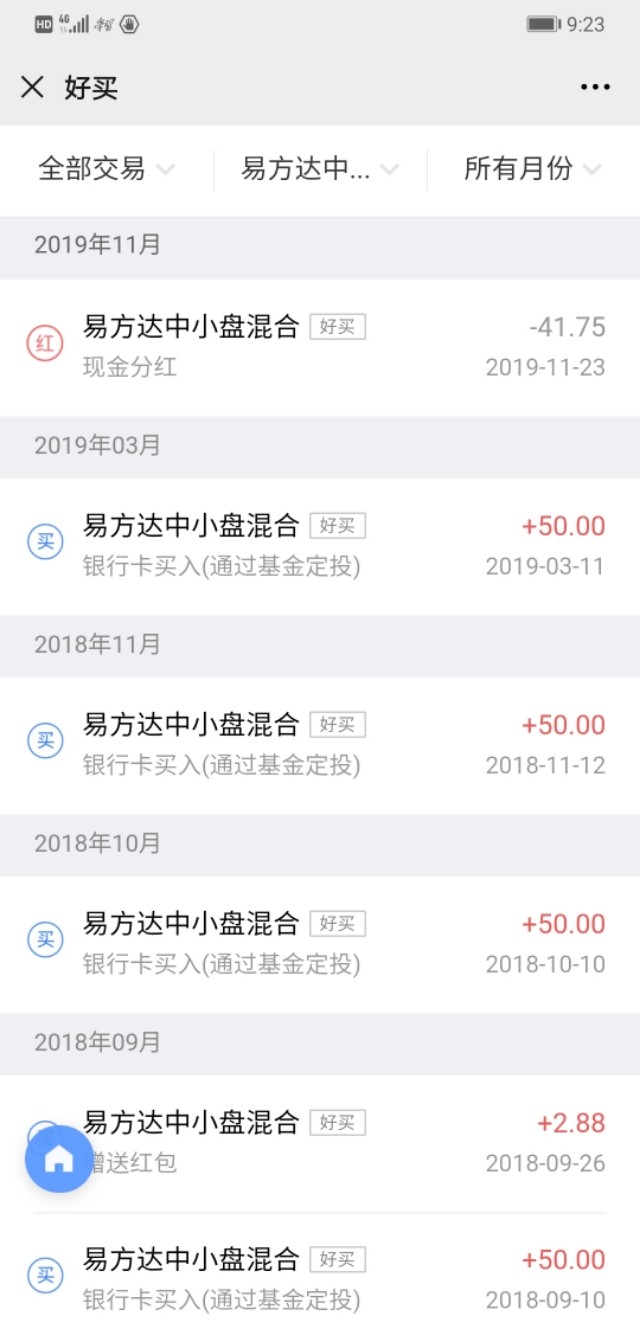 因为之前用的少,所以110011易方达中小盘混合基金就一直放在理财通里面,现在看来第一笔定投都有二年了。