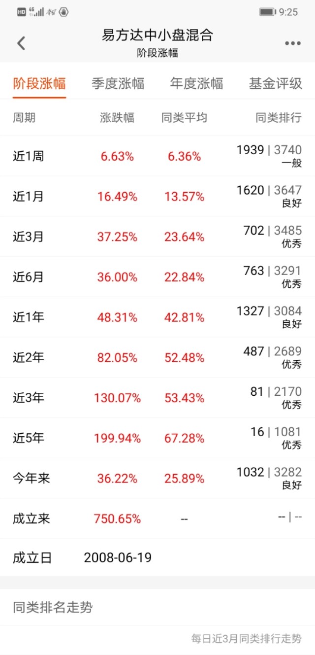 怎么评价110011易方达中小盘?我的想法是这样的:剔除货基,易方达基金公司管理规模是基金公司的带头大哥,很多基金不错,但易方达基金公司比较遗憾的是没有一个收益率破1000%的,里面有很多故事就不先展开说,收益率破1000%也不能保证你买基金后一定会赚钱,但对于基金公司来说就是一个门面和招牌。分析过易方达的基金,最接近1000%就是110011易方达中小盘,毕竟原来的基础好,虽然易方达新兴成长等基金最近一年也猛,但是原来基数不高也难短期内到达1000%。我更侧重相信110011会被公司培养成1000%的基金。换言之,我的110011能达到92%收益率不是蒙的,基金净值一样可以重点培养出来的。举一个例子,比如一个省重点中学想培养一个清华北大的学生作为学校门面宣传,倾一校的能力还是不难做到的,原理也是差不多。