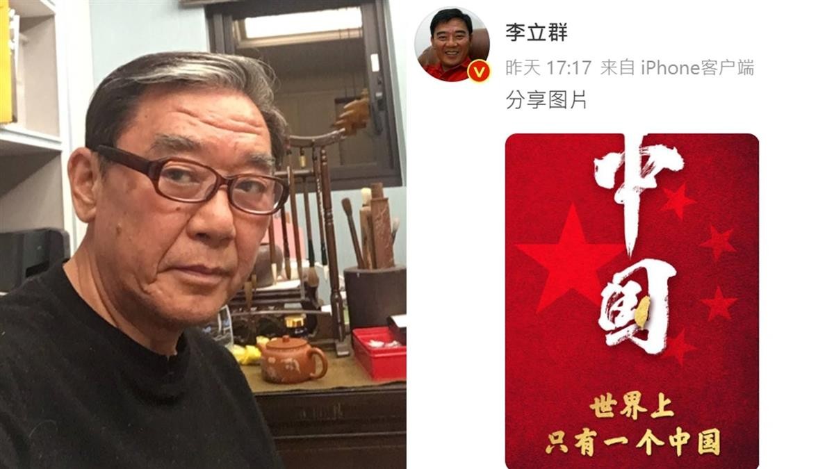 李立群除了上月脱口说出“即便是打仗,自己也会是死守台湾的人”外,本月美国众议院议长裴洛西(Nancy Pelosi)旋风来台,《央视新闻》在官方微博上贴出“世界上只有一个中国”的图片,不少台籍艺人都有转发,包括欧阳娜娜、王大陆、陈立农、信、郭品超、赖冠霖等人。