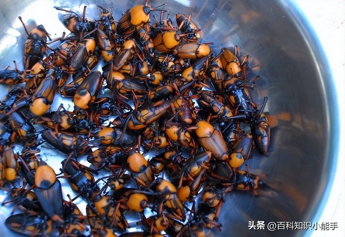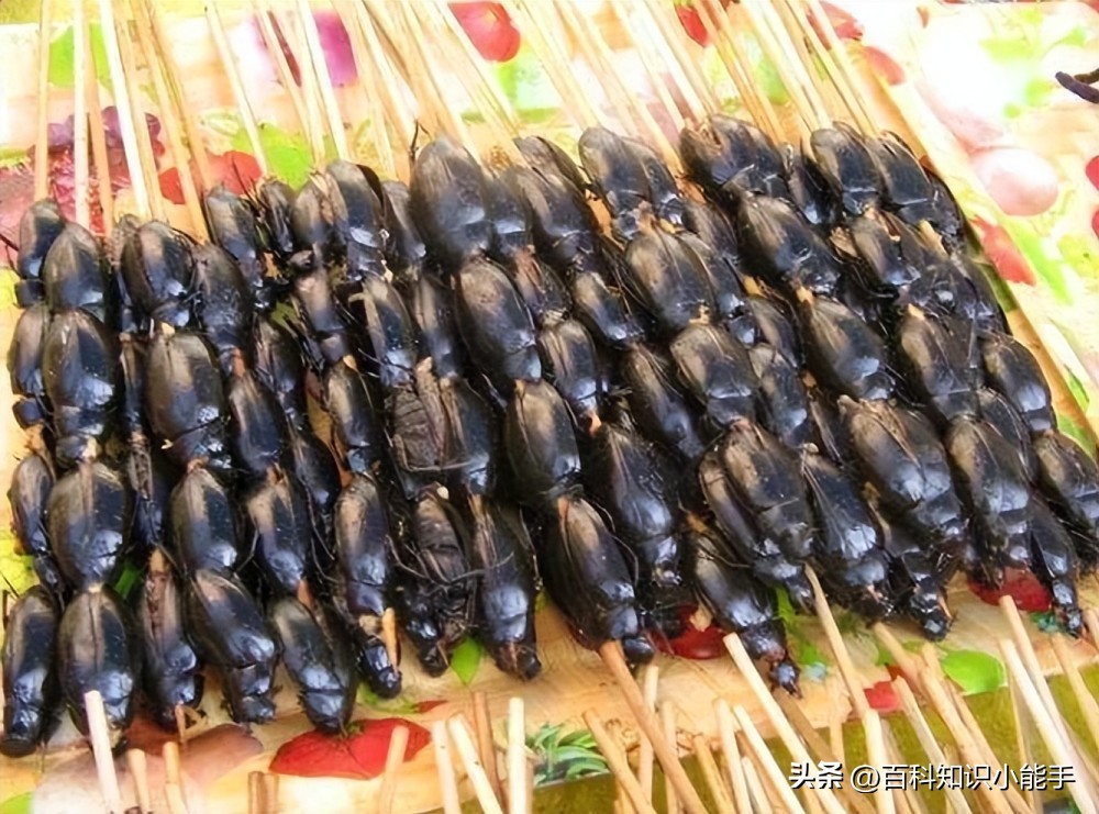 5、龙虱,药食两用昆虫,风味独特,营养丰富,被誉为“水中人参”,龙虱味道鲜美,可炸可煎可烤,用五香调味烤煎后,松脆可口,广东人喜吃龙虱;也可做成补酒,能补肾健脾。
