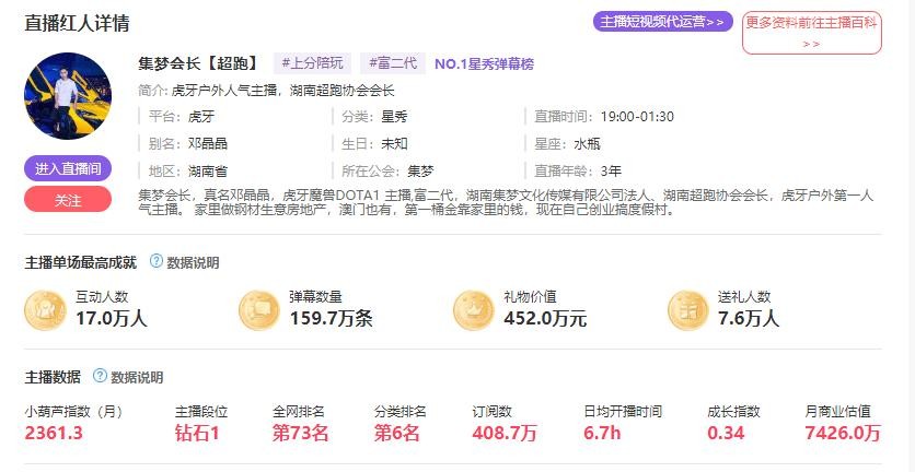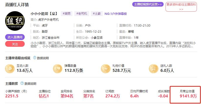 这个商业估值,应该是根据人气,排名,开播时间。以及营收综合出来计算的。
