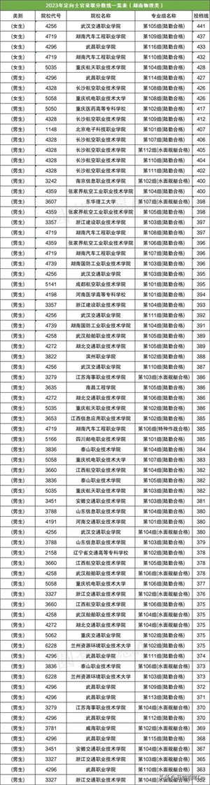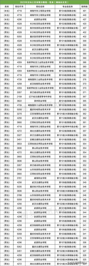 面向女生招生的士官专业组有3个,其中录取分最低的是武昌职业学院108组(437分)。