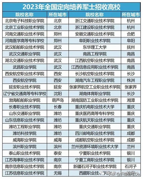 2023年定向士官的招生院校由44所增至48所,关于这48所的具体院校名单及分布情况,如下: