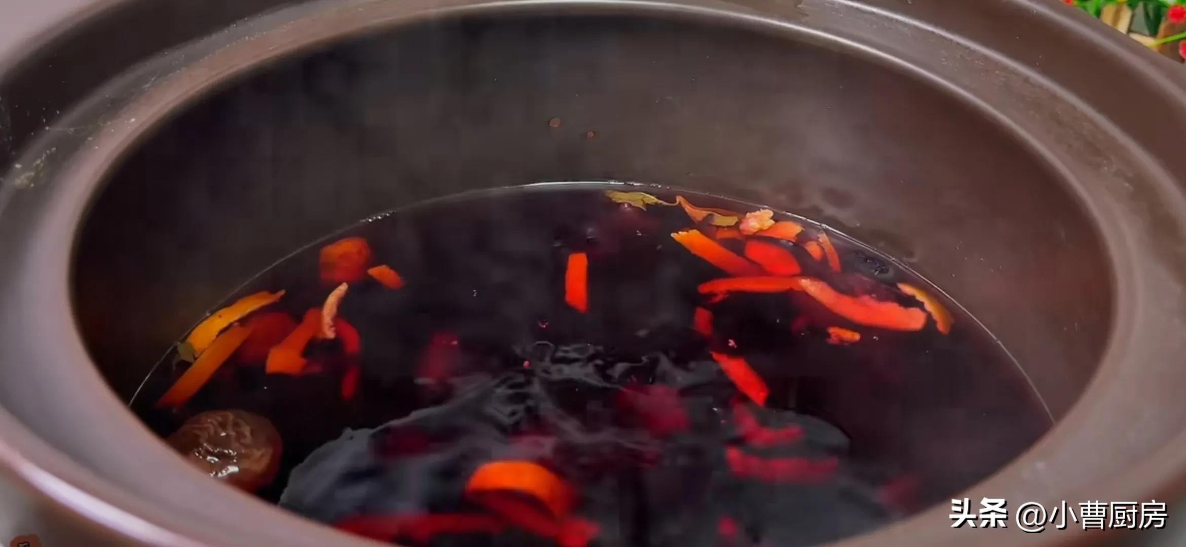 等锅里的水完全煮至沸腾的时候,要立即转小火熬制30分钟,火一定不要开的太大不然容易发苦,用小火慢煨像这种是开未开的状态即可。