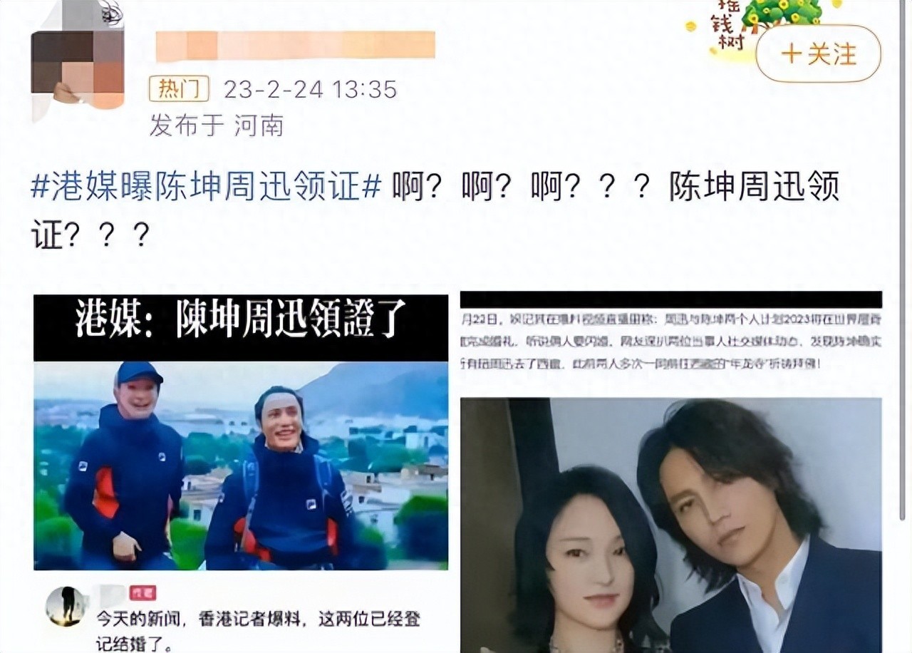 大家好,又到了吃瓜时间了,今天为大家带了一个超级大瓜,一起看看是什么瓜吧。2月24日,娱乐圈中突然曝出一条爆炸性消息,港媒爆料称周迅与陈坤已领证结婚,将在今年举办婚礼。其中有一张周迅和陈坤在机场的照片显示两人穿情侣装,周迅小腹微微隆起,疑似怀孕,网友纷纷猜测他们是否是奉子成婚。