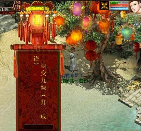 第一张图咱们先来个简单一点的,答题在游戏里出现过很多种呈现方式,但是这种在灯笼树上猜灯谜的玩法,不知道你是不是还记得呢?