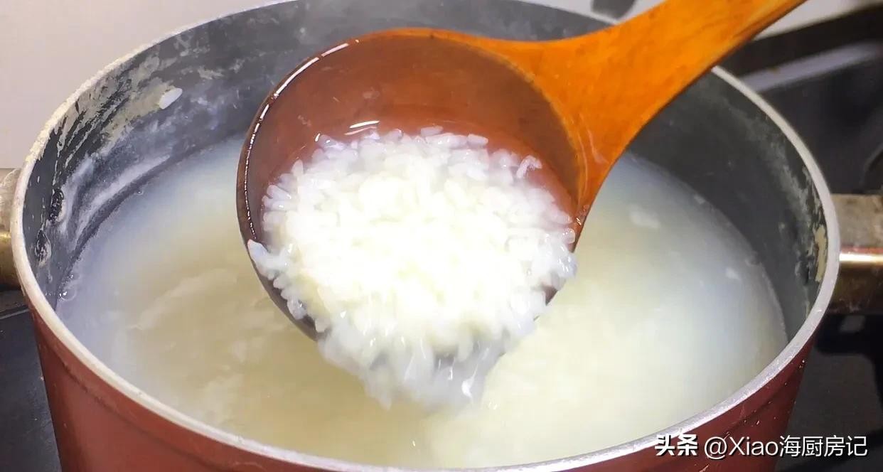 5.锅中水开倒入洗净的大米和糯米搅匀