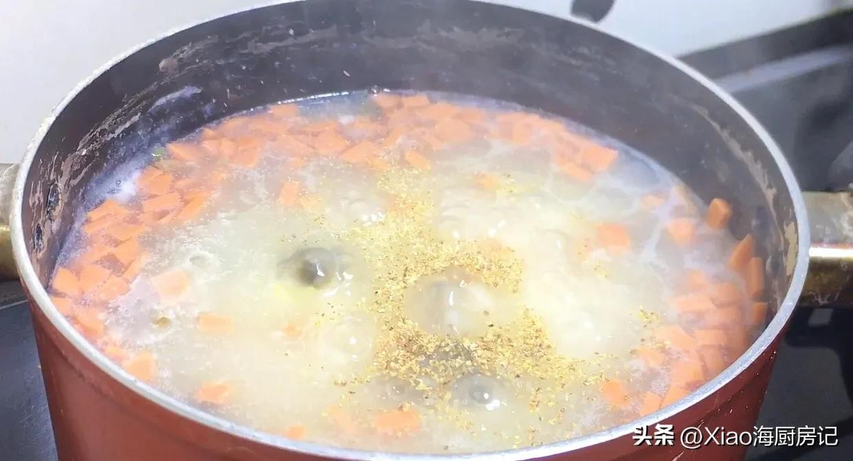 10.调味锅中加入一勺盐 ,白胡椒粉搅匀