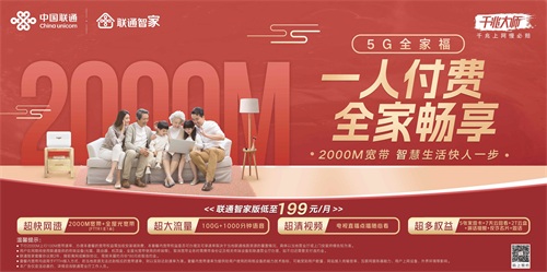 东莞联通推出5G全家福家庭2000M优惠套餐,每月低至199元