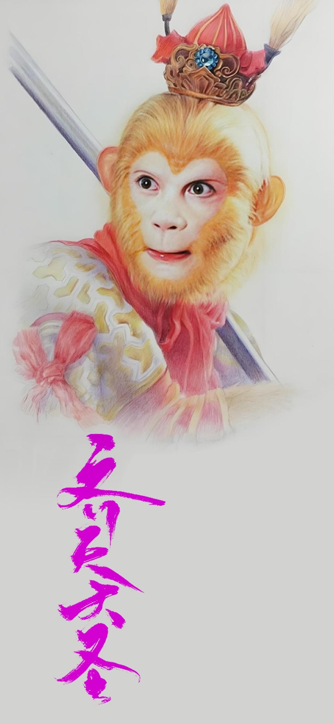 下面这张壁纸,福图一刻用写实的《西游记》电视剧孙悟空的彩绘形象作为图片元素,同时进行了清晰化处理,下方放置了齐天大圣几个艺术字,让我们致敬经典影视剧《西游记》。