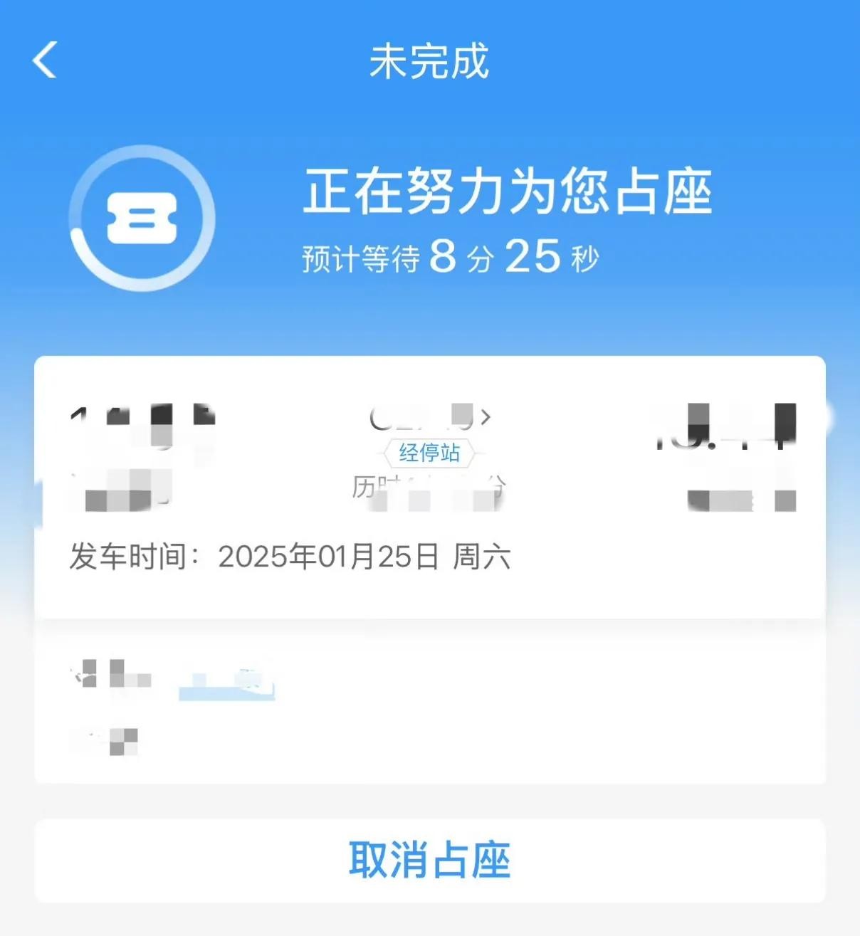 如果你看到“占座中”这个提醒页面,先不要急着退出,至少要等待5分钟后再返回。