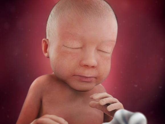 您的宝宝现在看起来几乎就像一个微型新生儿。功能,如嘴唇和眉毛更加明显,但将彩色他眼中的色素不存在呢。