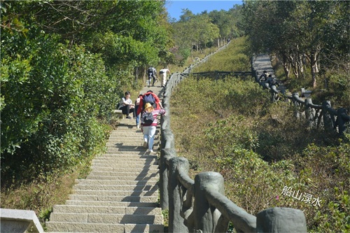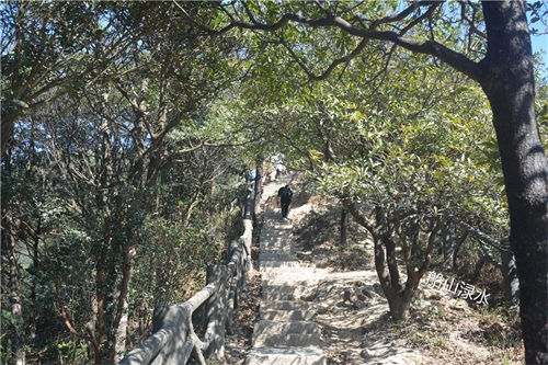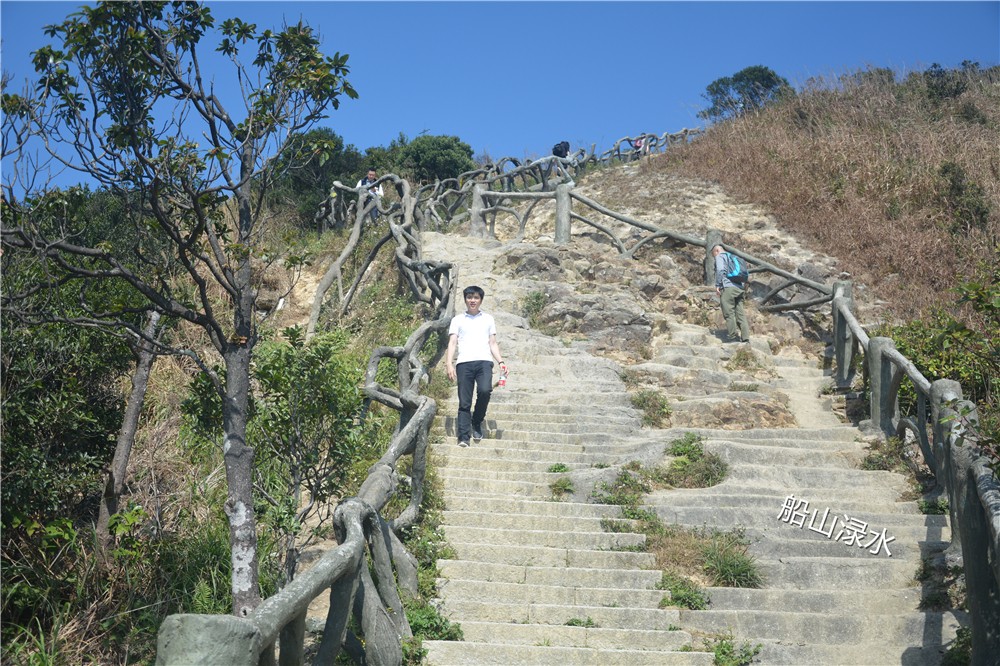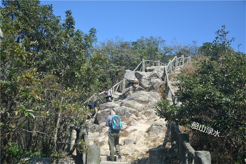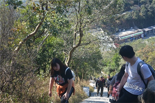 同行的阿曾见山高坡陡,面露难色,对我说还是不爬了吧。我打量了眼前的好汉坡,觉得还是能攀登上去的。于是,我说我还是去尝试一下,让阿曾留在服务中心休息,等我登完大梧桐下来后再一块回家。轮年龄,阿曾要比我小十一岁,但他有高血压,加上已经步行了3个多小时了,确实力不从心了。好在这天,深圳一家外贸公司年底搞活动,组织员工登大梧桐山比赛。虽然阿曾不能与我同行,但有更多的年轻人与我为伍,看着这群朝气蓬勃的俊男美女,增添了我攀登大梧桐的勇气与信心。