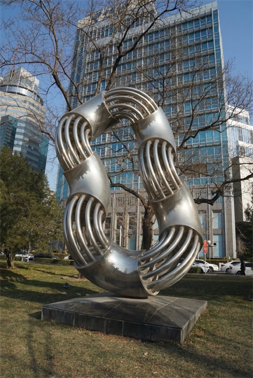 这是金融街最大的一个单体不锈钢雕塑,像是资金链。
