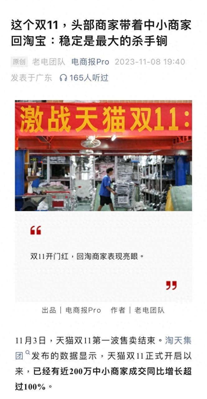 从批发部到产业带品牌,香朵儿是当下中国产业带升级的一个缩影。随着越来越多商家回淘做品牌,也意味着电商行业在经历了短暂的拼流量、拼低价之后完成了蝶变,新的风口来了——今年双11,天猫双11已经有超过220万中小商家实现成交翻倍。