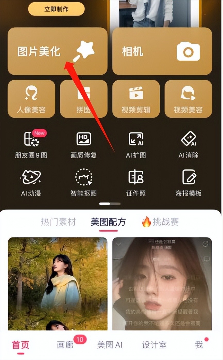 1、打开美图秀秀app,选择一张需要调分辨率的图片,点击进入【图片美化】页面;